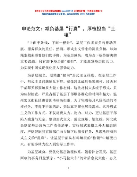 / 申论范文:减负基层“行囊”,厚植担当“土壤”