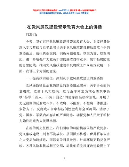 / 在党风廉政建设警示教育大会上的讲话