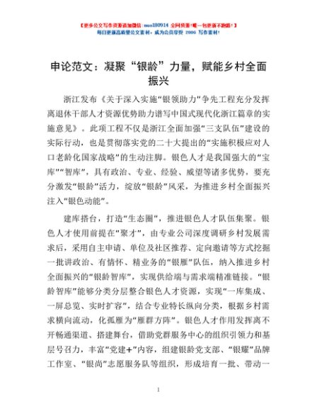 / 申论范文:凝聚“银龄”力量,赋能乡村全面振兴