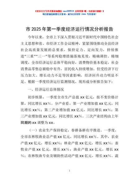 / 市2025年第一季度经济运行情况分析报告