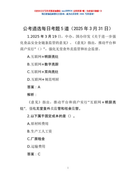 / 公考遴选每日考题5道(2025年3月31日)