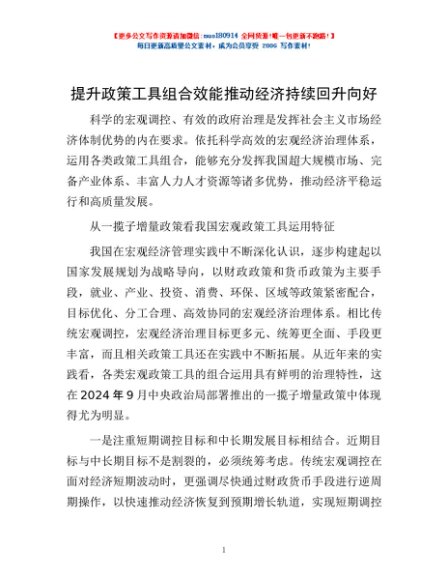 / 提升政策工具组合效能 推动经济持续回升向好
