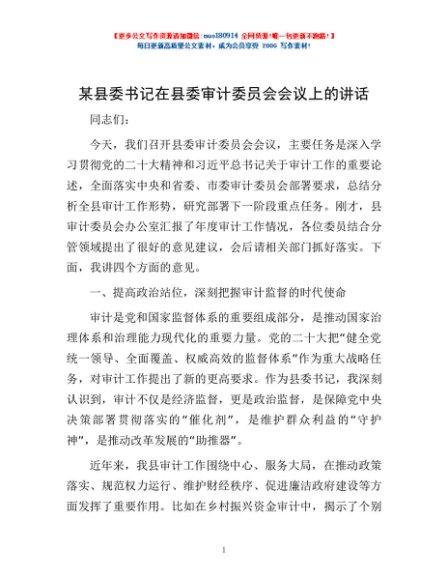 / 某县委书记在县委审计委员会会议上的讲话