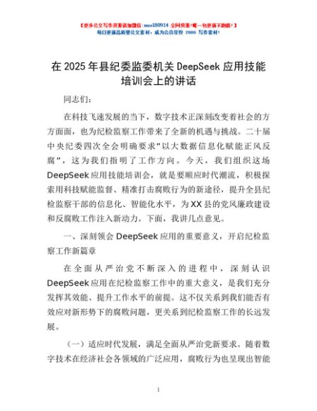 / 在2025年县纪委监委机关DeepSeek应用技能培训会上的讲话