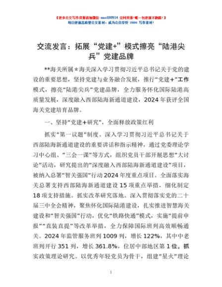 交流发言:拓展“党建+”模式擦亮“陆港尖兵”党建品牌