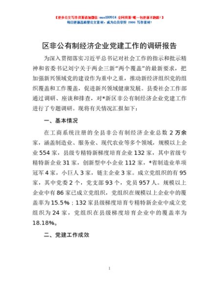 / 区非公有制经济企业党建工作的调研报告