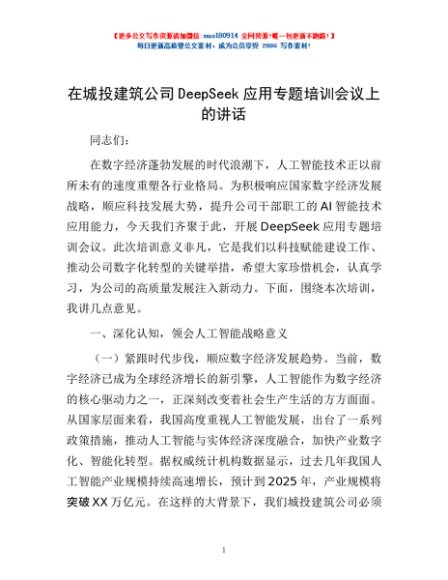 / 在城投建筑公司DeepSeek应用专题培训会议上的讲话
