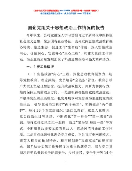 / 国企党组关于思想政治工作情况的报告