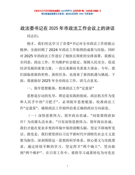 / 政法委书记在2025年市政法工作会议上的讲话