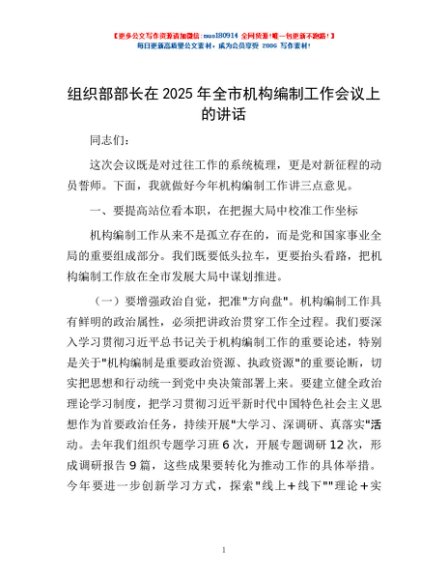 / 组织部部长在2025年全市机构编制工作会议上的讲话