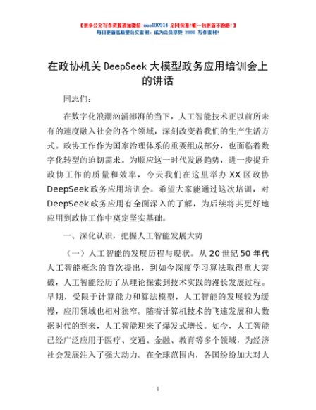 / 在政协机关DeepSeek大模型政务应用培训会上的讲话