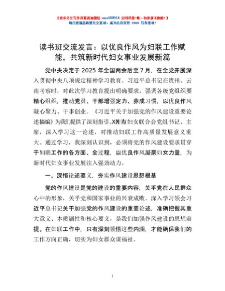 / 读书班交流发言:以优良作风为妇联工作赋能,共筑新时代妇女事业发展新篇