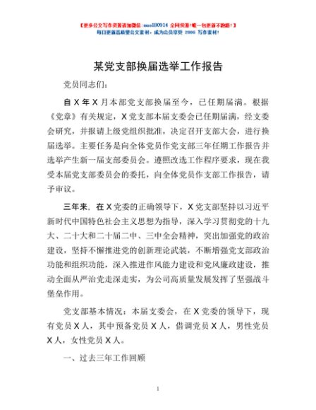 / 某党支部换届选举工作报告