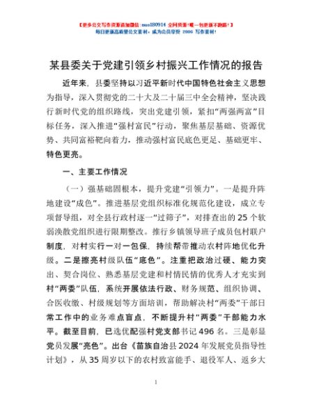 / 某县委关于党建引领乡村振兴工作情况的报告