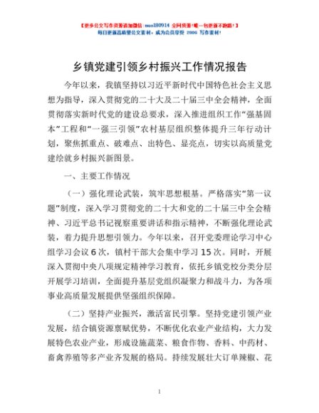 / 乡镇党建引领乡村振兴工作情况报告