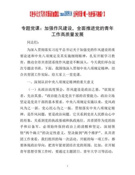 专题党课:加强作风建设,全面推进党的青年工作高质量发展
