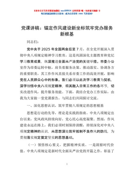/ 党课讲稿:锚定作风建设新坐标 筑牢党办服务新根基