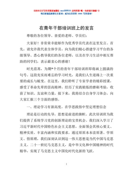 / 在青年干部培训班上的发言