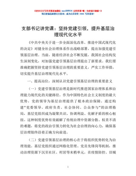 / 支部书记讲党课:坚持党建引领,提升基层治理现代化水平