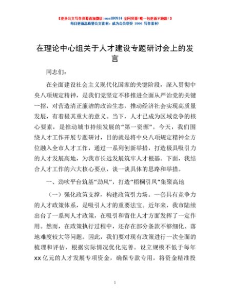 / 在理论中心组关于人才建设专题研讨会上的发言