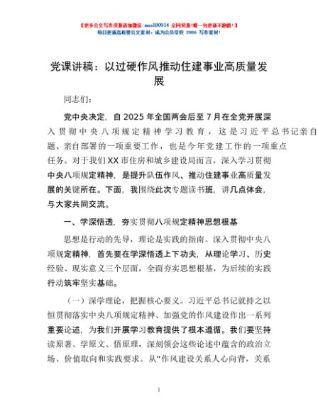 / 党课讲稿:以过硬作风推动住建事业高质量发展