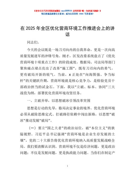 / 在2025年全区优化营商环境工作推进会上的讲话