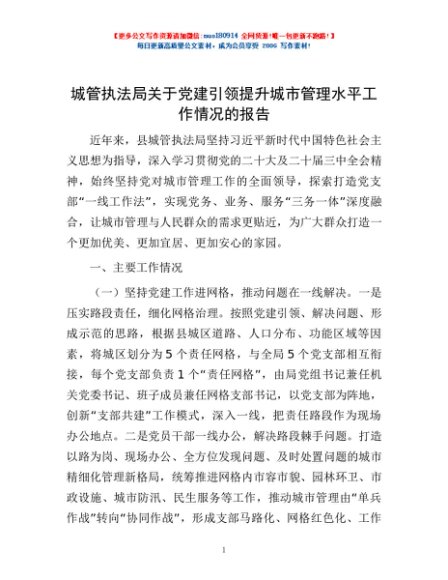 / 城管执法局关于党建引领提升城市管理水平工作情况的报告