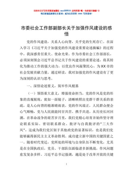 / 市委社会工作部副部长关于加强作风建设的感悟