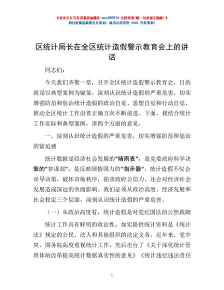 / 区统计局长在全区统计造假警示教育会上的讲话