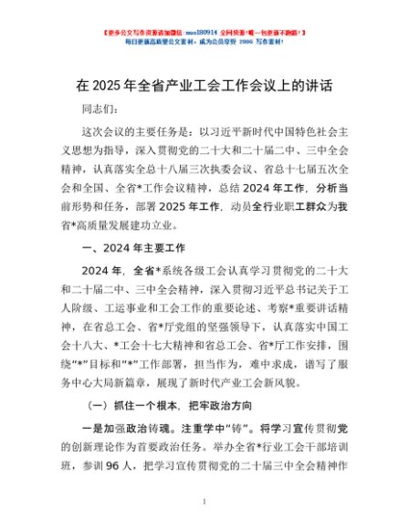 / 在2025年全省产业工会工作会议上的讲话