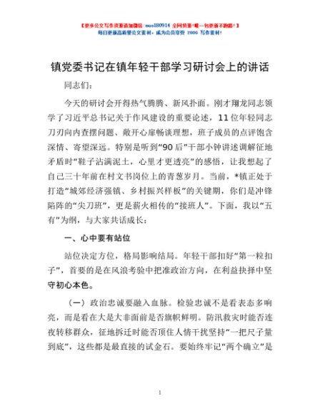 / 镇党委书记在镇年轻干部学习研讨会上的讲话