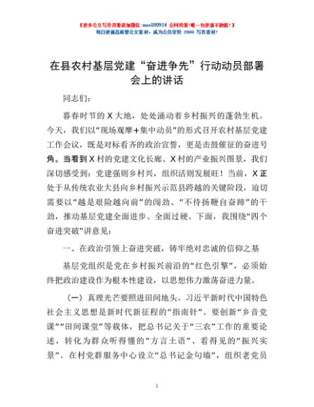 / 在县农村基层党建“奋进争先”行动动员部署会上的讲话