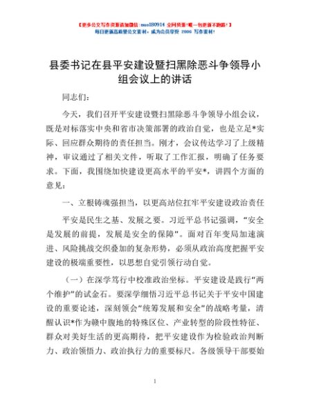 / 县委书记在县平安建设暨扫黑除恶斗争领导小组会议上的讲话