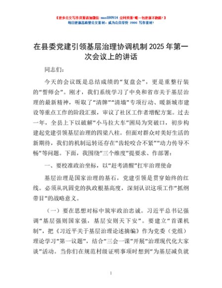 / 在县委党建引领基层治理协调机制2025年第一次会议上的讲话