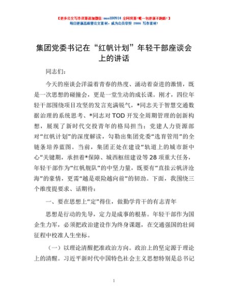 / 集团党委书记在“红帆计划”年轻干部座谈会上的讲话