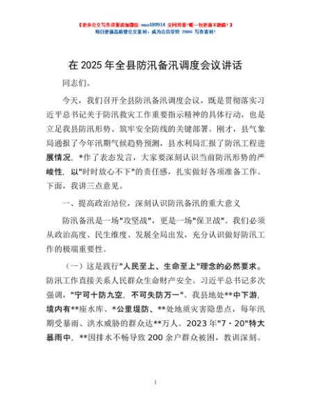 / 在2025 年全县防汛备汛调度会议讲话