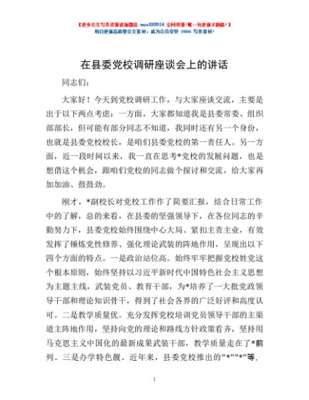/ 在县委党校调研座谈会上的讲话