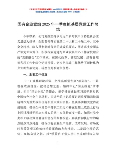 / 国有企业党组2025年一季度抓基层党建工作总结