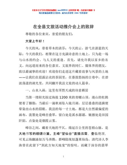 / 在全县文旅活动推介会上的致辞