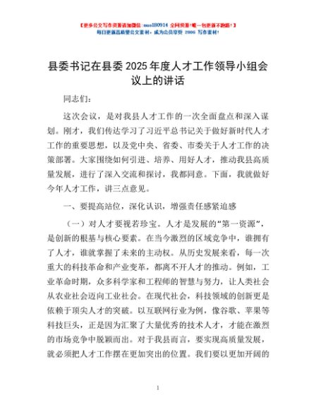 / 县委书记在县委2025年度人才工作领导小组会议上的讲话