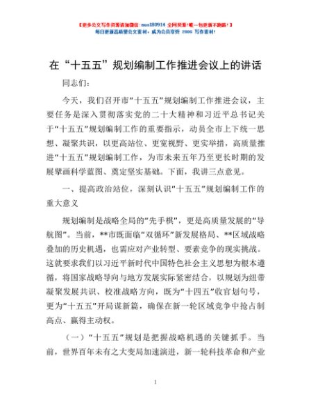 / 在“十五五”规划编制工作推进会议上的讲话