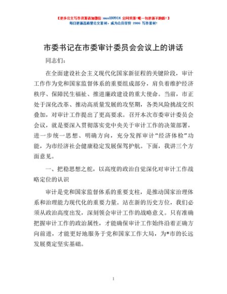 / 市委书记在市委审计委员会会议上的讲话