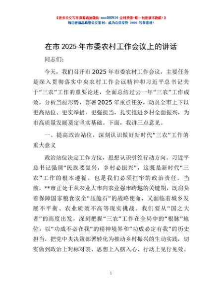 / 在市2025年市委农村工作会议上的讲话