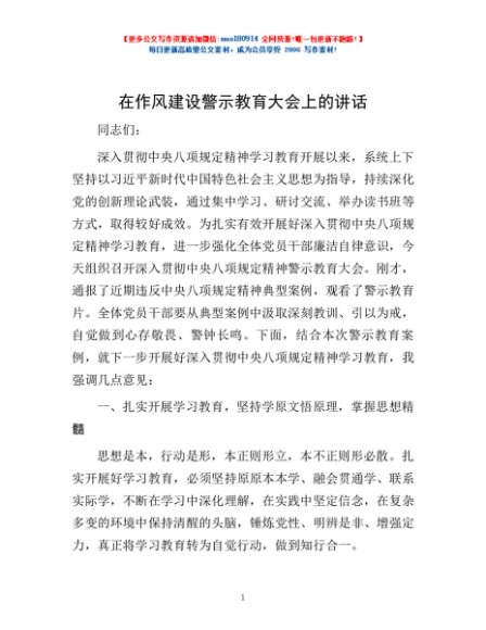 / 在作风建设警示教育大会上的讲话