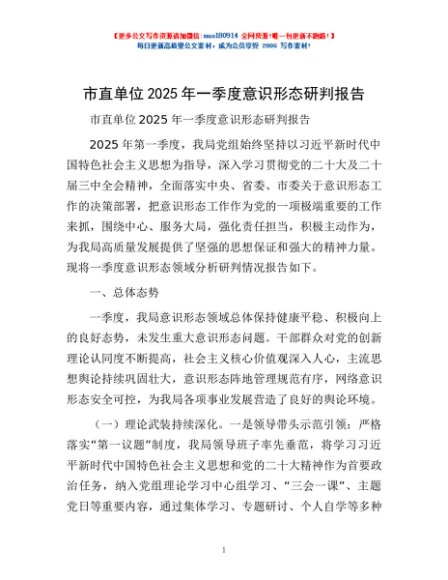 / 市直单位2025年一季度意识形态研判报告