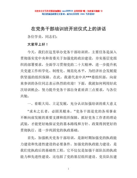 / 在党务干部培训班开班仪式上的讲话