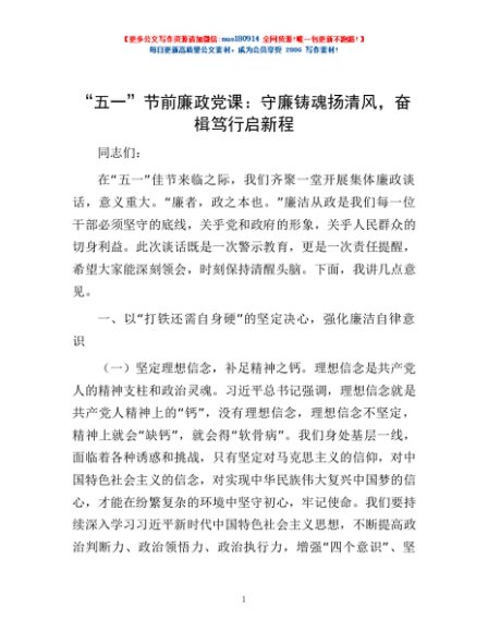 / “五一”节前廉政党课:守廉铸魂扬清风,奋楫笃行启新程