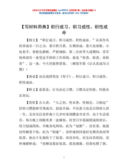 / 【写材料用典】积行成习、积习成性、积性成命