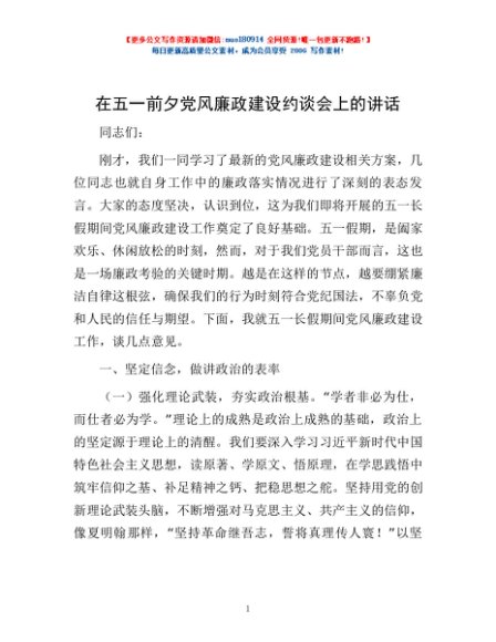 / 在五一前夕党风廉政建设约谈会上的讲话