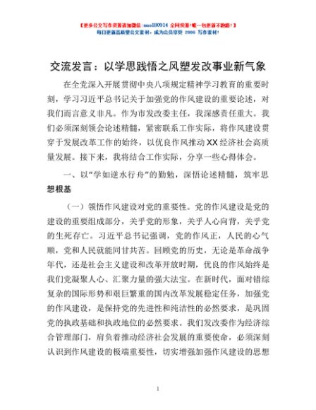 / 交流发言:以学思践悟之风 塑发改事业新气象